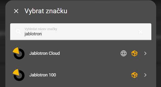 · Vyhledejte „Jablotron“ a klikněte na něj